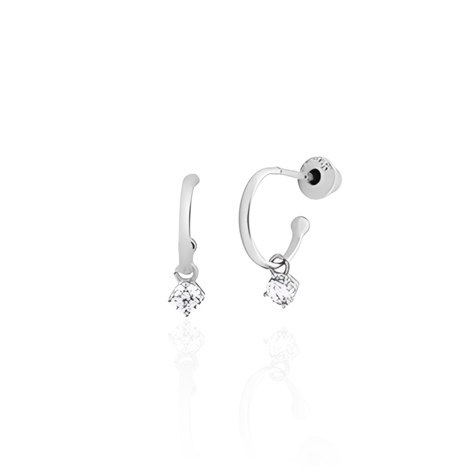 Esse brinco em prata 925 traz o formato delicado da meia argola com um pingente de zircônia que reflete a luz com suavidade. O design minimalista e leve é ideal para quem ama peças discretas, versáteis e cheias de delicadeza. Perfeito para uso diário ou para compor mix de brincos com um toque sutil de brilho.